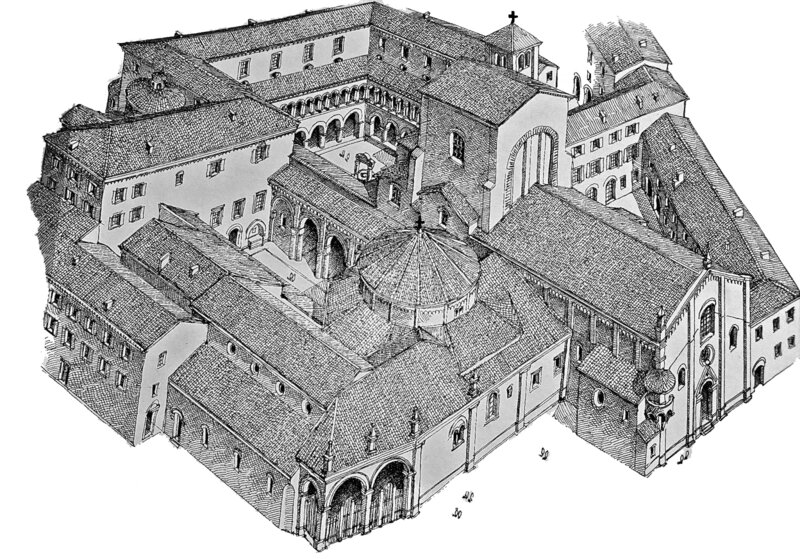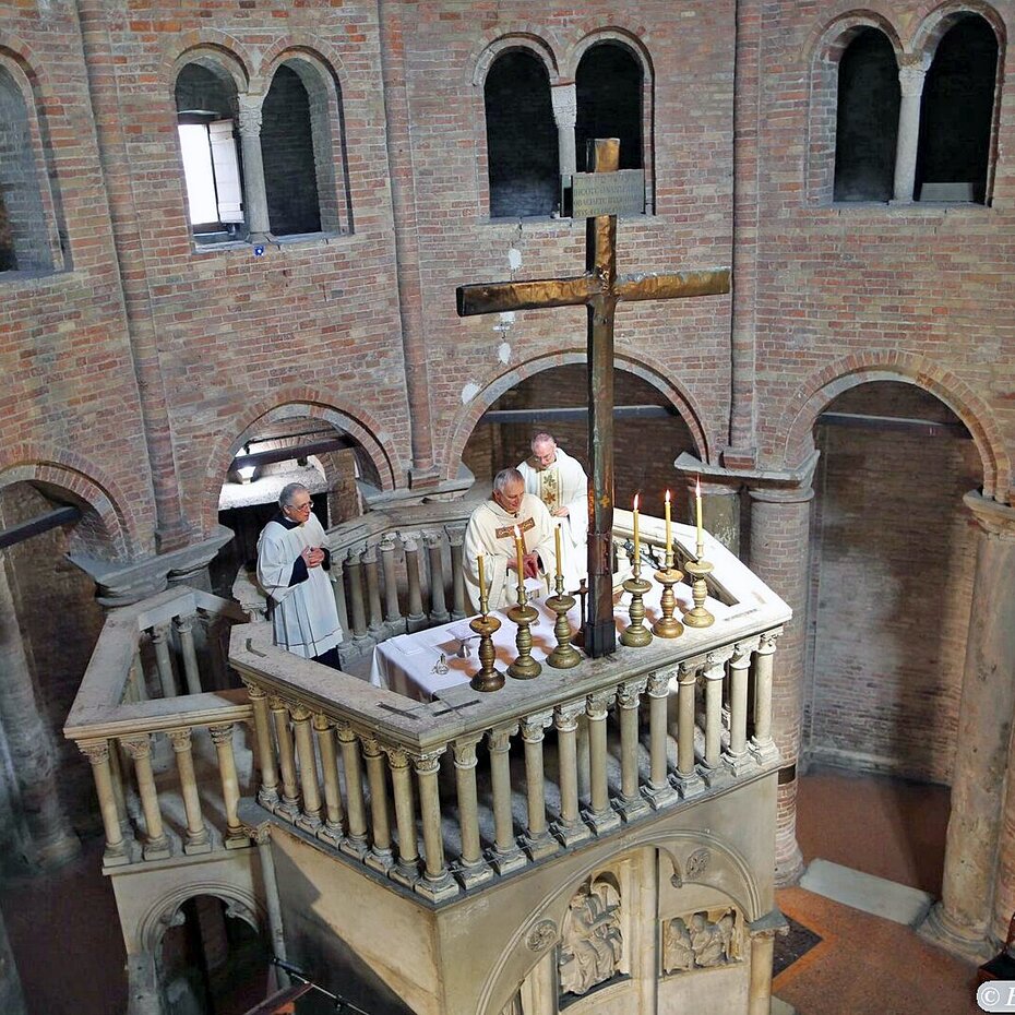 Der hl. Petronius (Bischof u. Stadtpatron von Bologna 431 – 450) hat den ersten Bau über einem alten heidnischen Isis-Tempel errichtet. Hier befindet sich die älteste Kopie des hl. Grabes Jesu von Jerusalem.